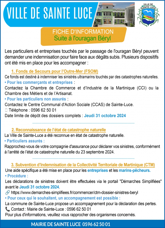 Alerte sms ville de Sainte-Luce Martinique 972228