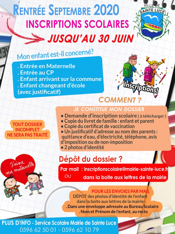 Le service scolaire reste cependant joignable au 0596 62 50 01 pour les questions relatives aux inscriptions.