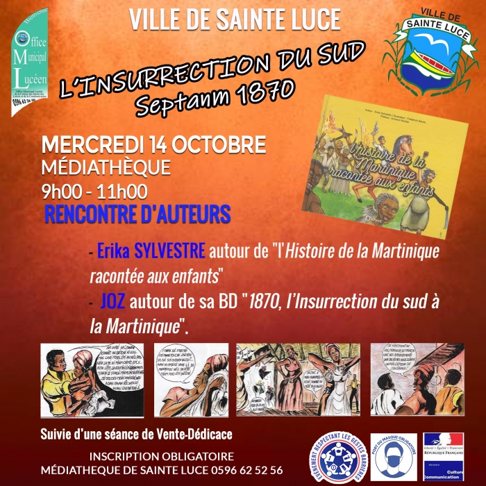 Dans le cadre du cent-cinquantenaire de l'Insurrection du Sud, la Ville de Sainte Luce et l’Office Municipal Lucéen convient la population à retracer les grandes lignes, à travers différents rendez-vous : Des rencontres d’auteurs pour les plus jeunes, des expositions, du théâtre, des projections de films, des échanges….sont au programme de la commémoration.