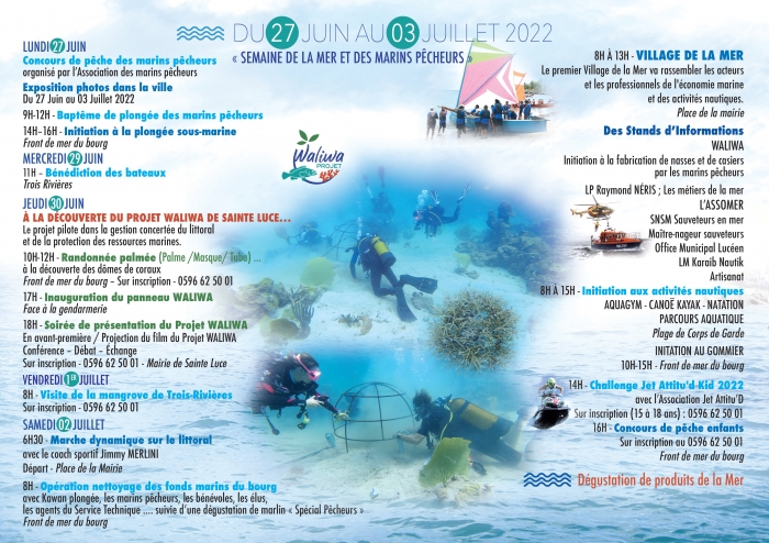 Du 27 Juin au 3 Juillet, la Ville de Sainte Luce vous convie à la Semaine de la Mer et des Marins Pêcheurs. Une semaine de fêtes, de découvertes, et de partage