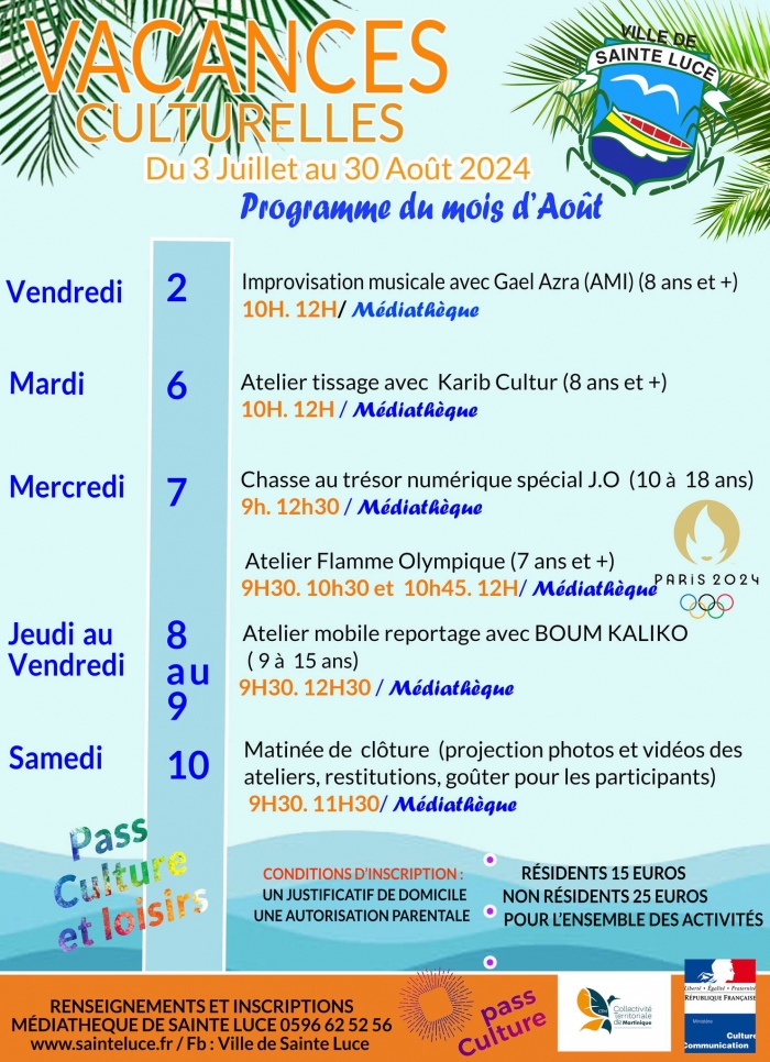 Plus d’infos médiathèque de Sainte Luce aux : 0596 62 52 56 📞