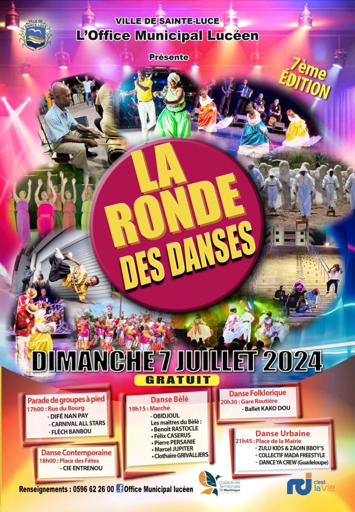 Le Dimanche 7 Juillet, l’Office Municipal Lucéen et la ville de Sainte Luce vous convient à la 7ème Édition de « La Ronde des Danses ». Ven ...