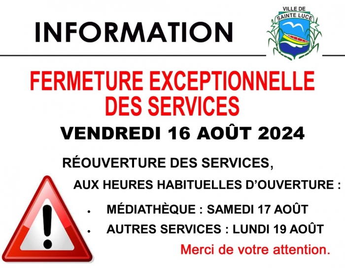 Fermeture exceptionnelle des services