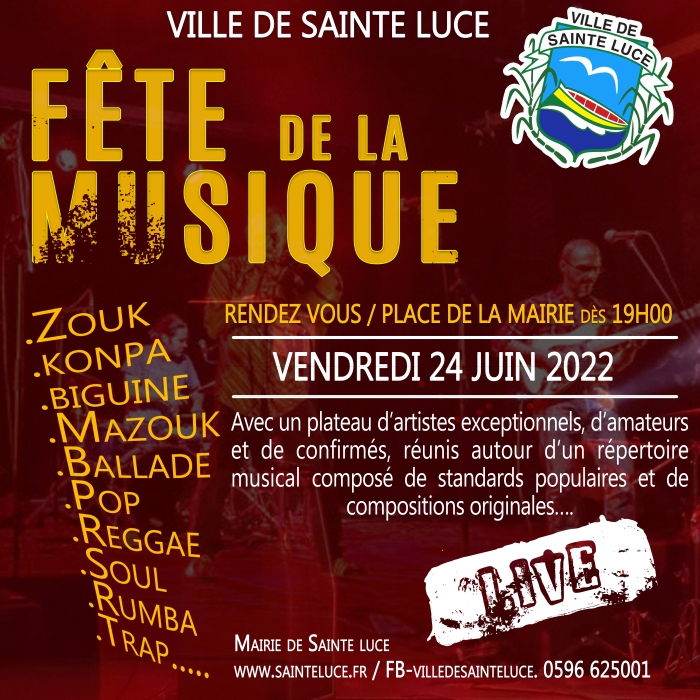 A Sainte Luce, la Fête de la Musique aura lieu ce Vendredi 24 Juin. La Ville de Sainte Luce vous donne Rendez Vous dès 19H, avec un plateau d’a ... |