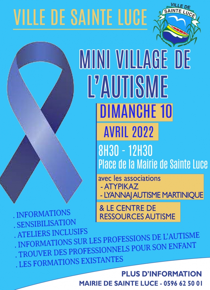 Ce Dimanche 10 Avril, de 8h30 à 12h00, sur la place de la Mairie de Sainte Luce, participez au Village de l’Autisme organisé par la Ville de Sa ...