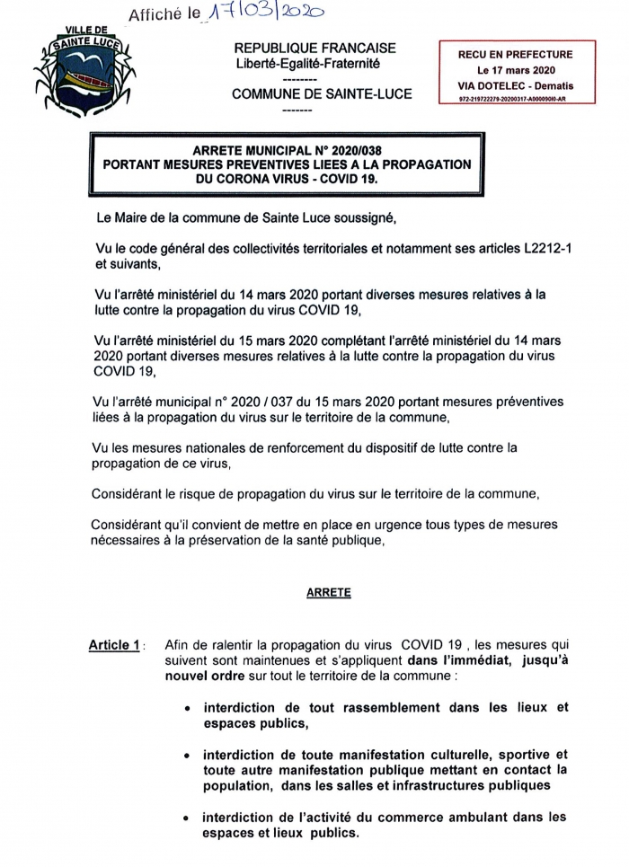 ARRÊT DE TOUTES MANIFESTATIONS SPORTIVES ET CULTURELLES Dans le cadre des mesures de prévention de la propagation de l’épidémie d ... |