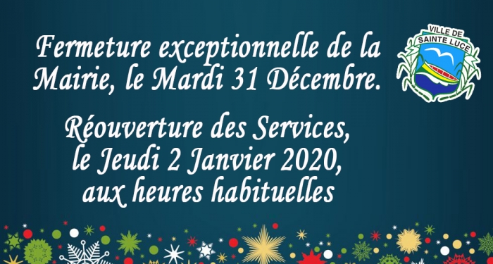 Le maire informe la population que dans le cadre des fêtes de fin d'année, les services municipaux seront fermés au public :