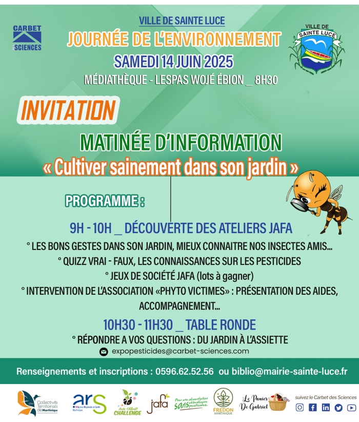 A l’occasion des Journées de l’Environnement, le Carbet des Sciences et la Ville de Sainte-Luce convient la population à une matinée d’inf ...
