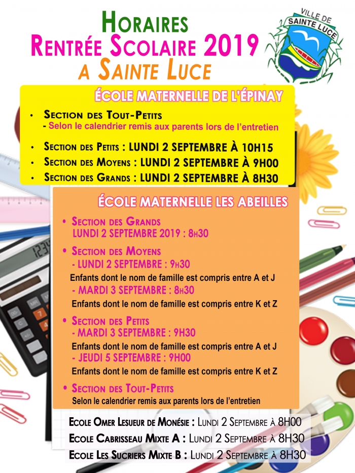 Rentrée Scolaire 2019 / 2020 : Retrouvez les horaires