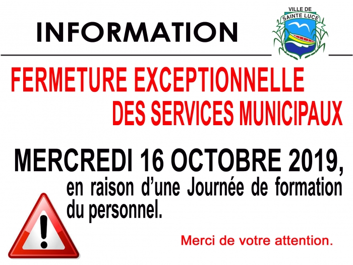 Fermeture exceptionnelle des services, Mercredi 16 Octobre 2019
