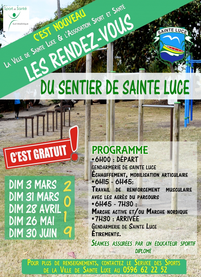 La ville de Sainte Luce et l’association Sport et Santé, convient la population aux « Rendez Vous du Sentier Littoral ». Il s’agit de séanc ...
