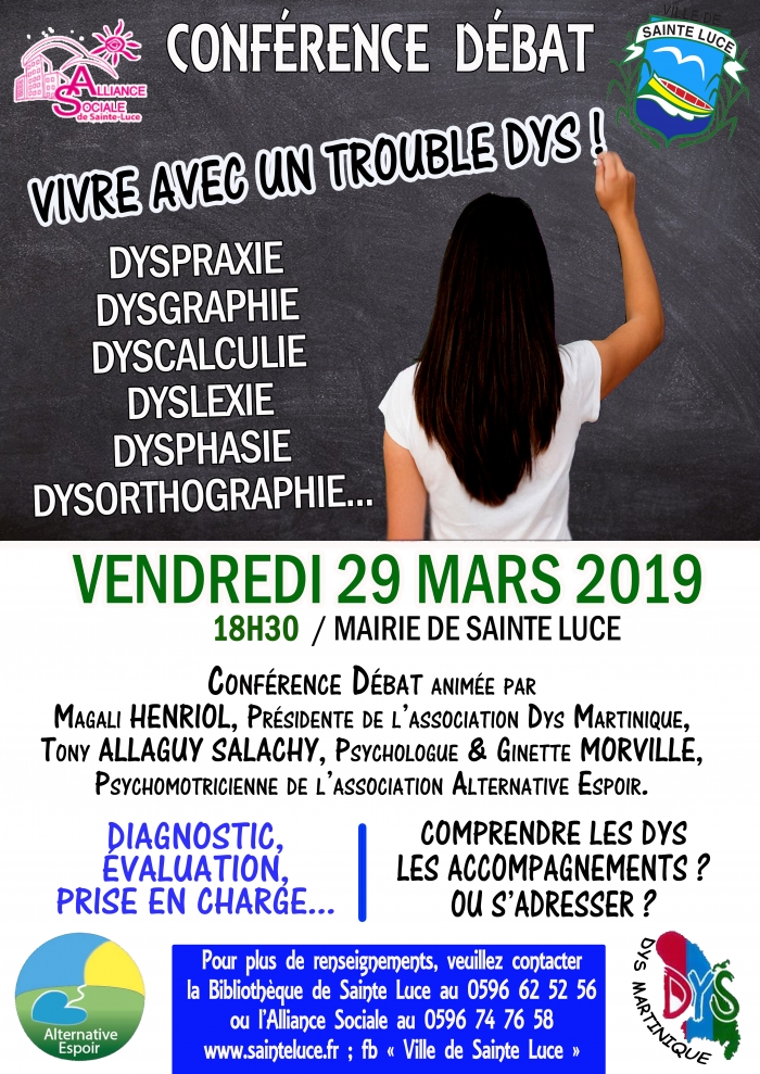 La ville de Sainte Luce et l’Alliance Sociale  », convient la population à une Conférence Débat sur le thème « Vivre avec un trouble D ...