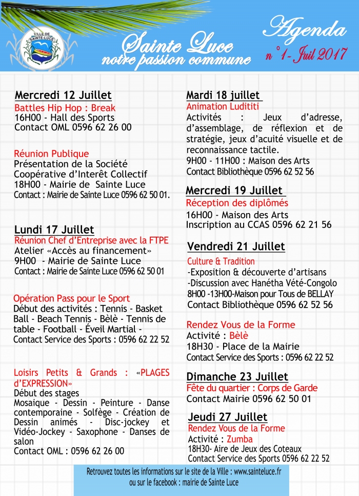 Pour ceux qui passent leurs vacances à Sainte Luce, profitez des nombreuses activités et rendez vous organisés par la Municipalité. Décou ... |