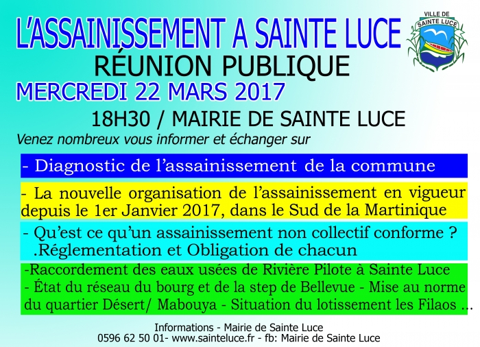 Mercredi 22 Mars 2017/ RÉUNION PUBLIQUE SUR L'ASSAINISSEMENT A SAINTE LUCE
