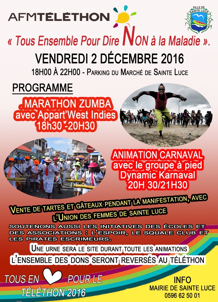 « Tous Ensemble Pour Dire NON à la Maladie »Pour participer à la lutte contre les myopathies, la municipalité de Sainte Luce, organise e ...