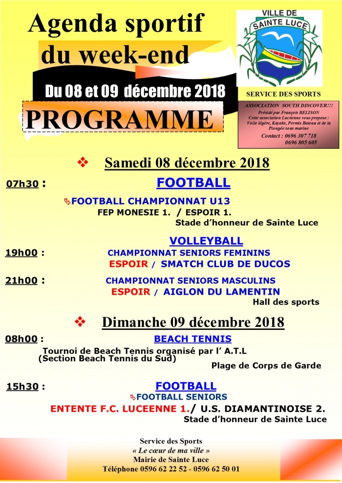 Retrouvez l'agenda sportif du Week End du 08 et 09 décembre 2018