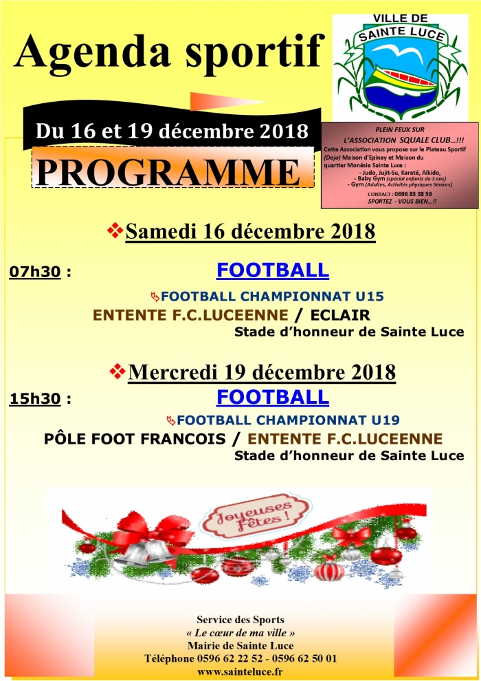 Retrouvez l'agenda sportif du 16 et 19 Décembre 2018