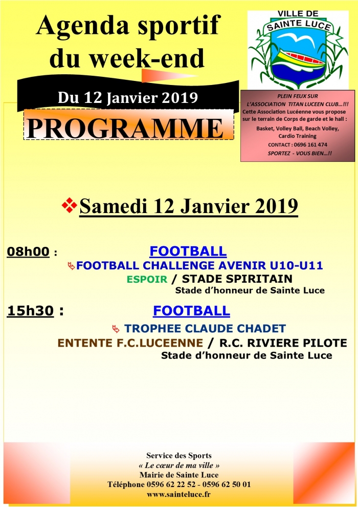 Retrouvez l'agenda sportif du 12 janvier 2019