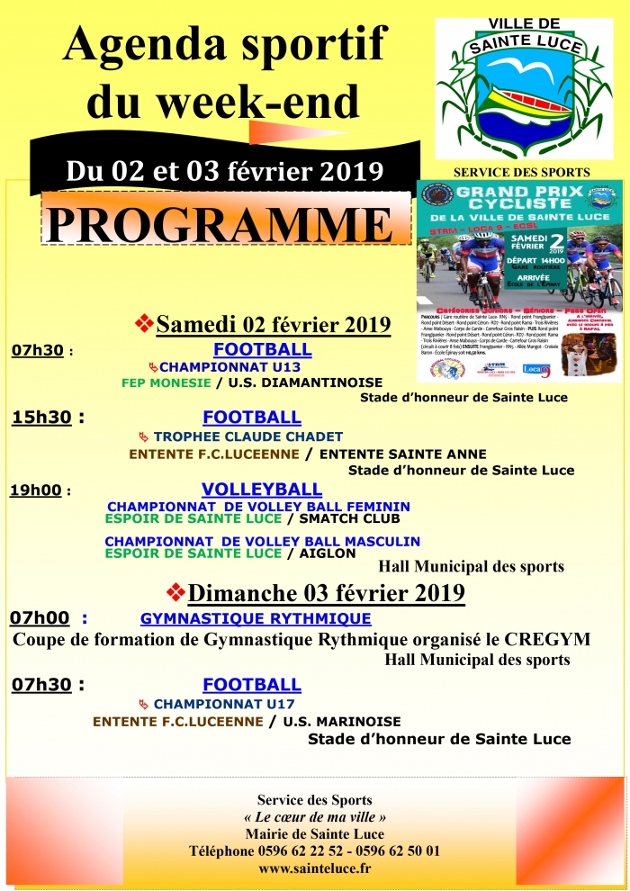 Retrouvez l'agenda sportif du 2 & 3 Février