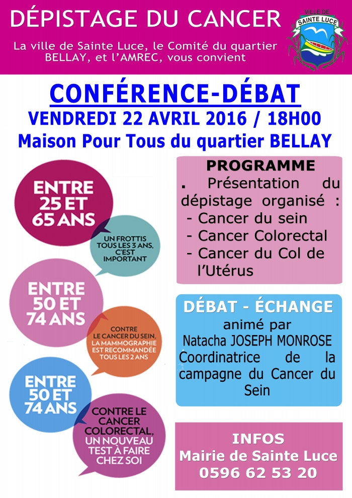 VENDREDI 22 AVRIL / CONFÉRENCE DÉBAT sur le DÉPISTAGE DU CANCER.