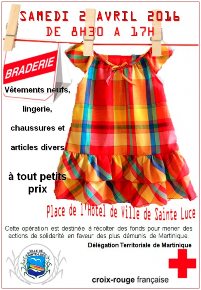 La Croix Rouge, en partenariat avec la Ville de Sainte Luce, organisent une grande braderie, le Samedi 2 Avril 2016, de 8H30 à < ...