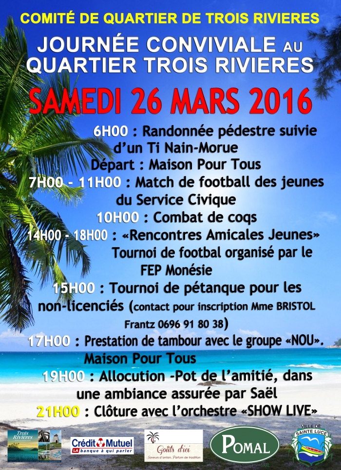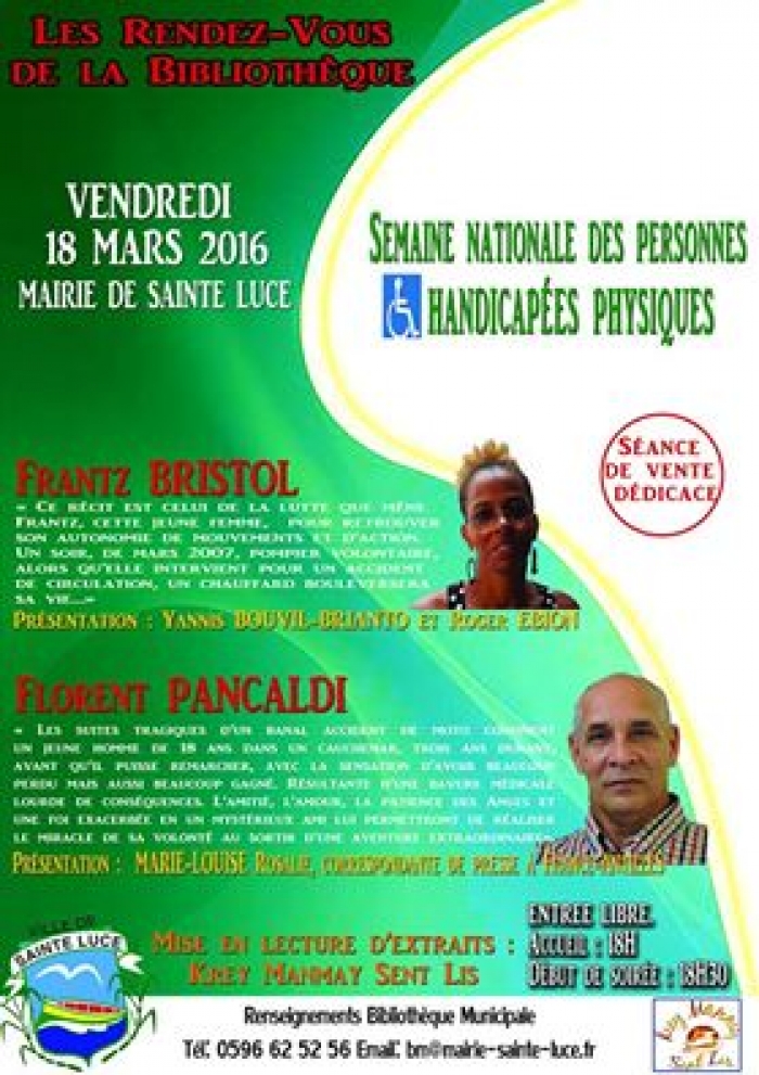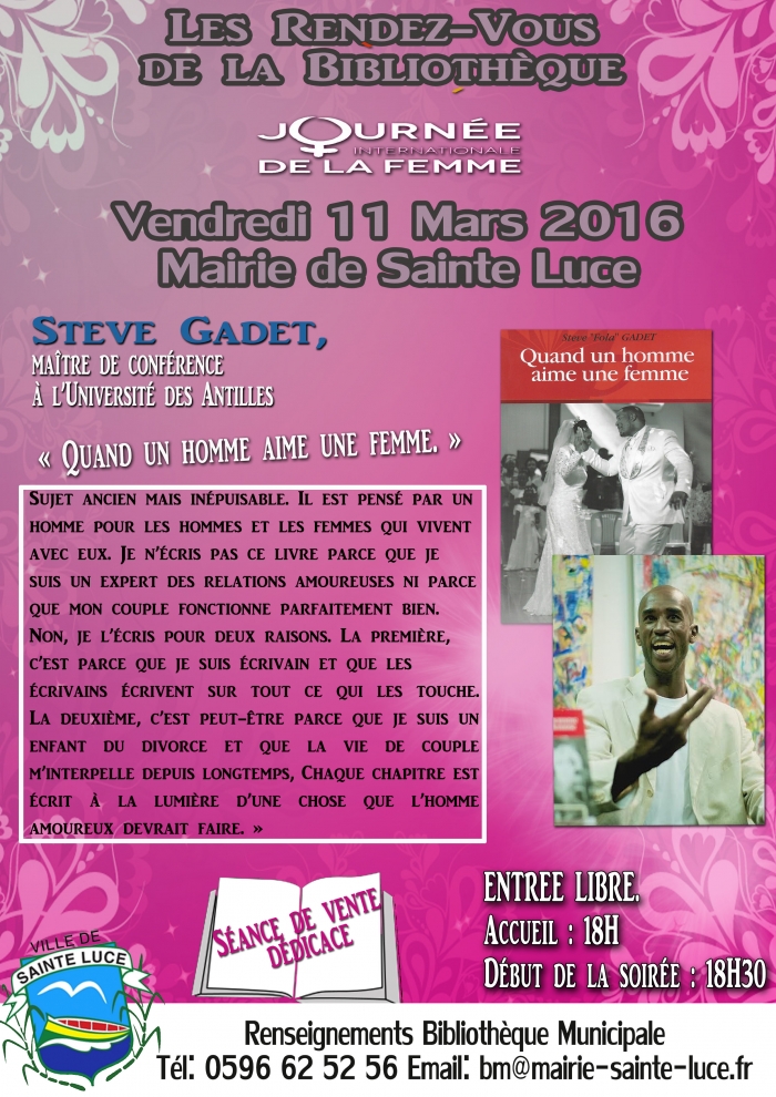 Dans le cadre de la journée de la femme, la ville de Sainte Luce, à le plaisir de vous convier, le VENDREDI 11 MARS, à 18H, à la soirée litté ... |