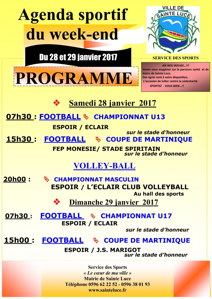 Retrouvez l'agenda du sport du week end du 28 et 29 Janvier 2017