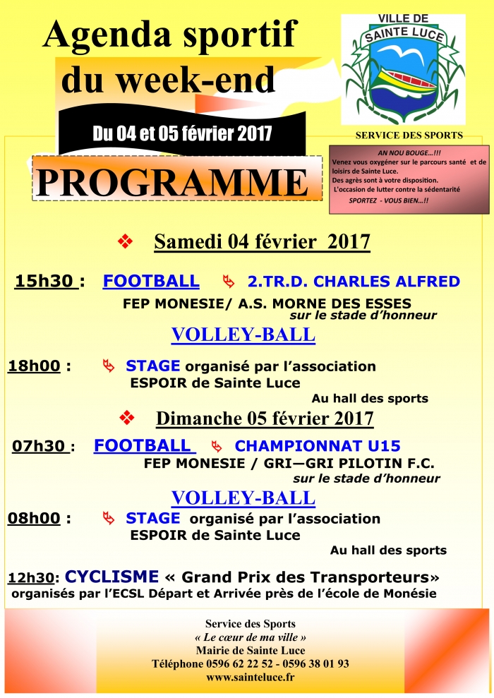 Retrouvez l'agenda du sport du week end du 4 et 5 Février 2017