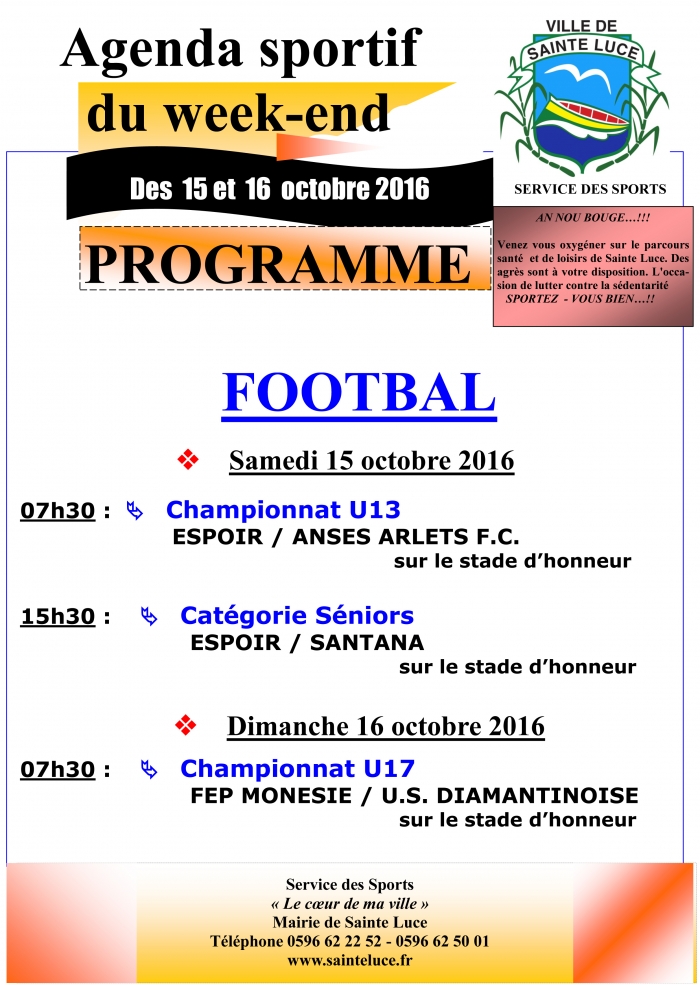 Retrouvez l'agenda du sport du week end du 15 et 16 Octobre 2016