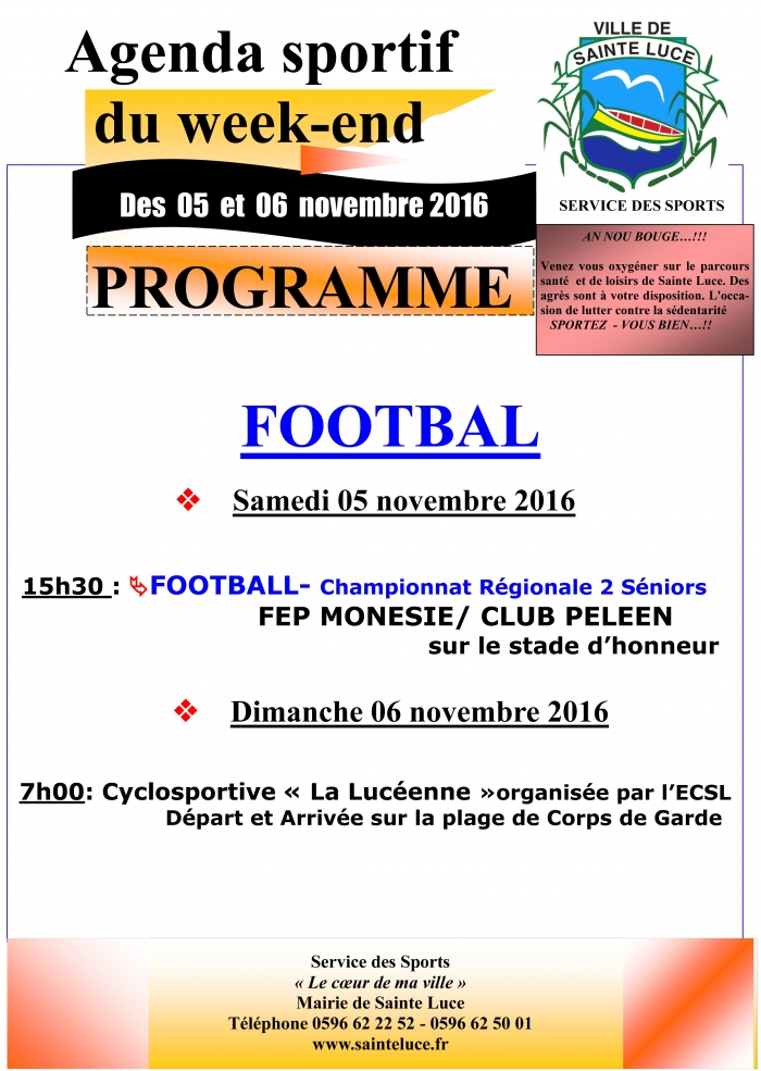 Retrouvez l'agenda du sport du week end du 5 et 6 Novembre 2016.