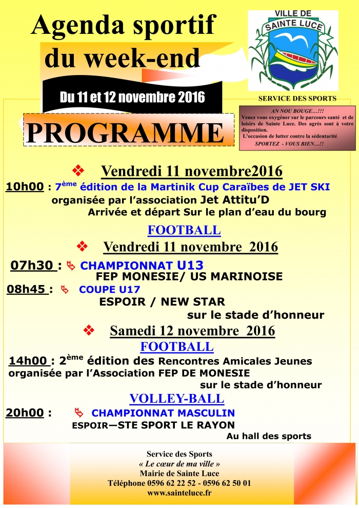Retrouvez l'agenda du sport du week end du 11 et 12 Novembre 2016.