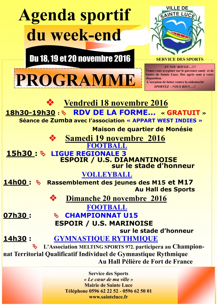 Retrouvez l'agenda du sport du week end du 18,19 et 20 Novembre 2016