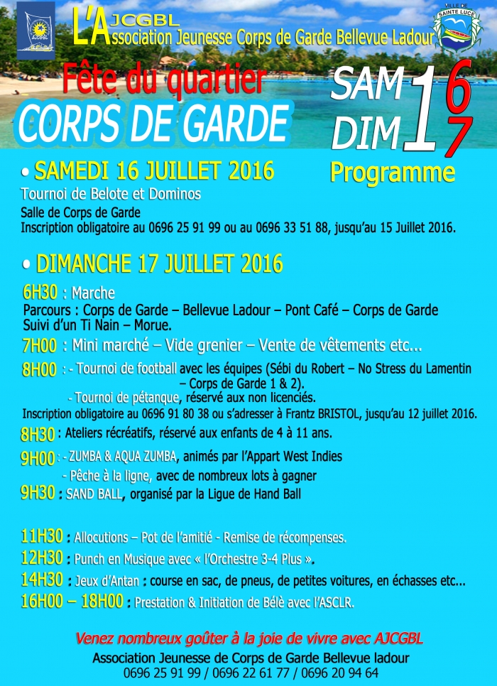 FÊTE DE CORPS DE GARDE : Samedi 16 & Dimanche 17 Juillet 2016.