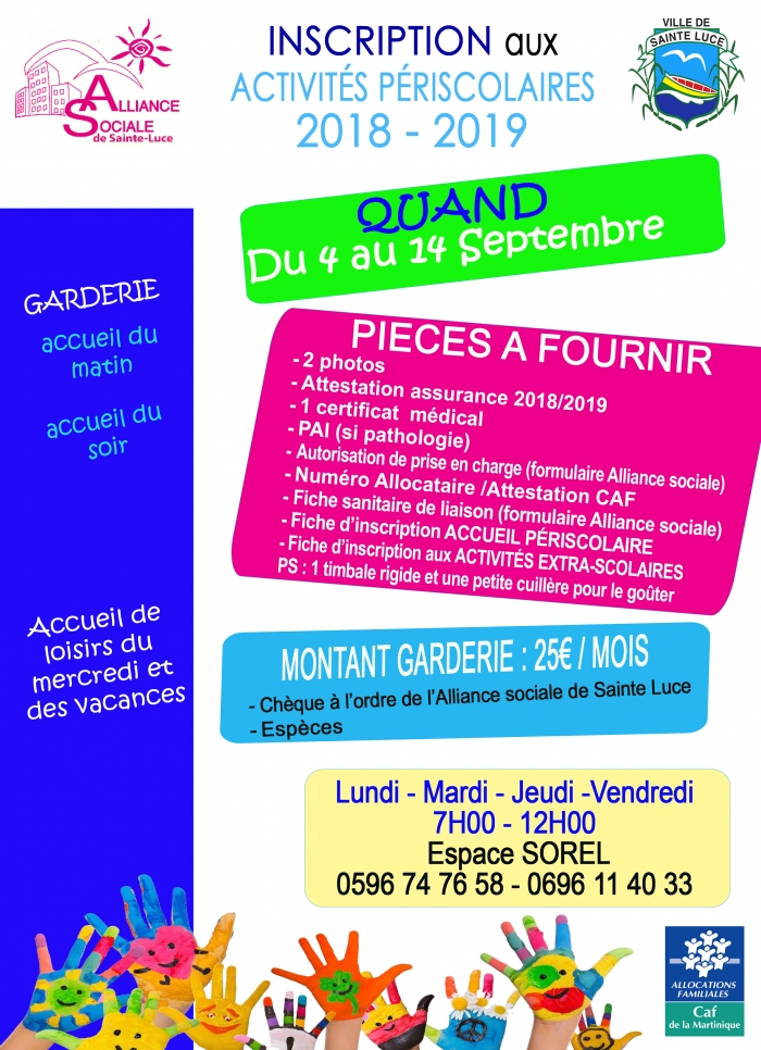 La municipalité informe les parents d'élèves que les activités de garderie débuteront dès le Mardi 4 Septembre 2018 dans ...