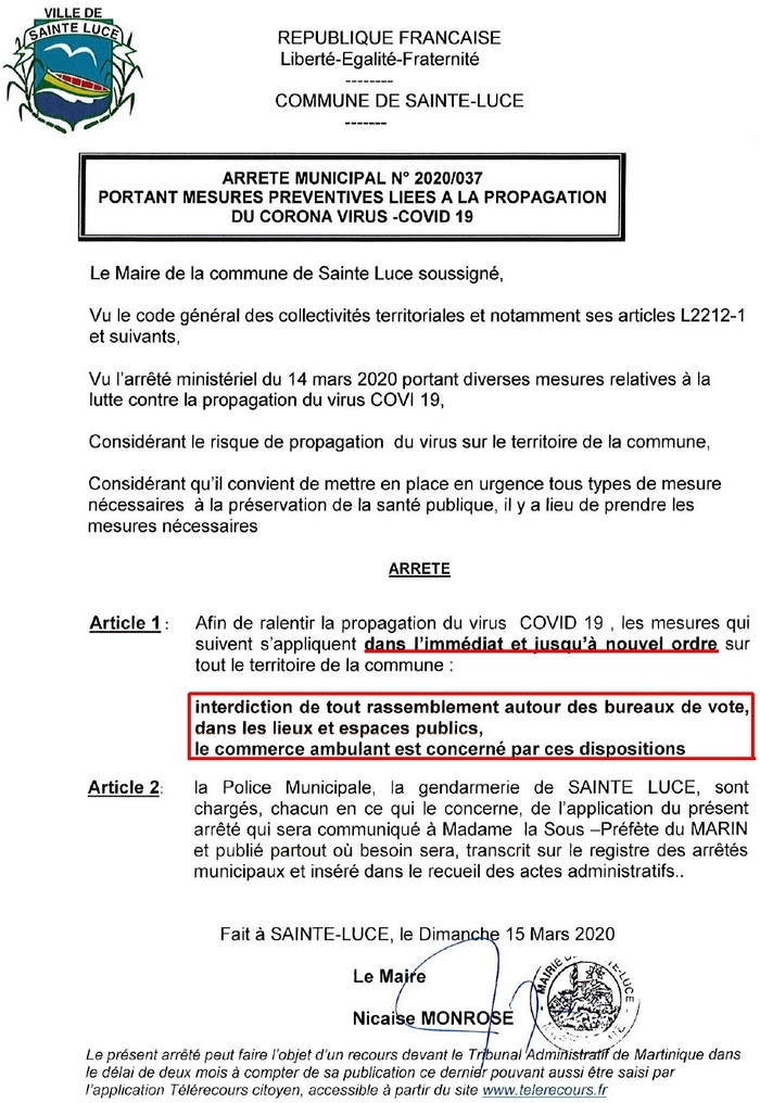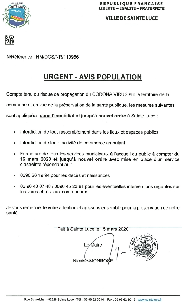 15/03 AVIS A LA POPULATION CORONA VIRUS COVID-19