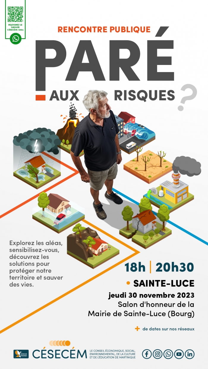Le CÉSECÈM et la Ville de Sainte Luce convent la population à une Réunion Publique sur les Risques Majeurs, le Jeudi 30 novembre à partir de 1 ...