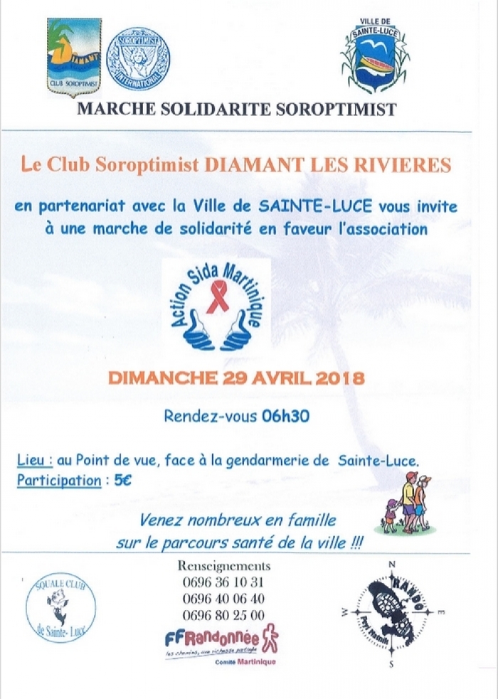 En partenariat avec la Ville de SAINTE-LUCE, le Club soroptimist DIAMANT LES RIVIERES vous invite à une marche de solidarità ...