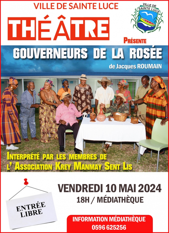 Dans le cadre du "MÉ AN MANNIMAN", la Ville de Sainte Luce vous convie à une représentation théâtrale de "Gouverneurs de la Rosée". ... |