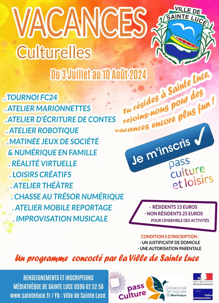 Rends tes Vacances plus fun en participant aux activités des Vacances Culturelles.😜 Chasse au trésor numérique, Tournoi FC24, Atelier r ... |